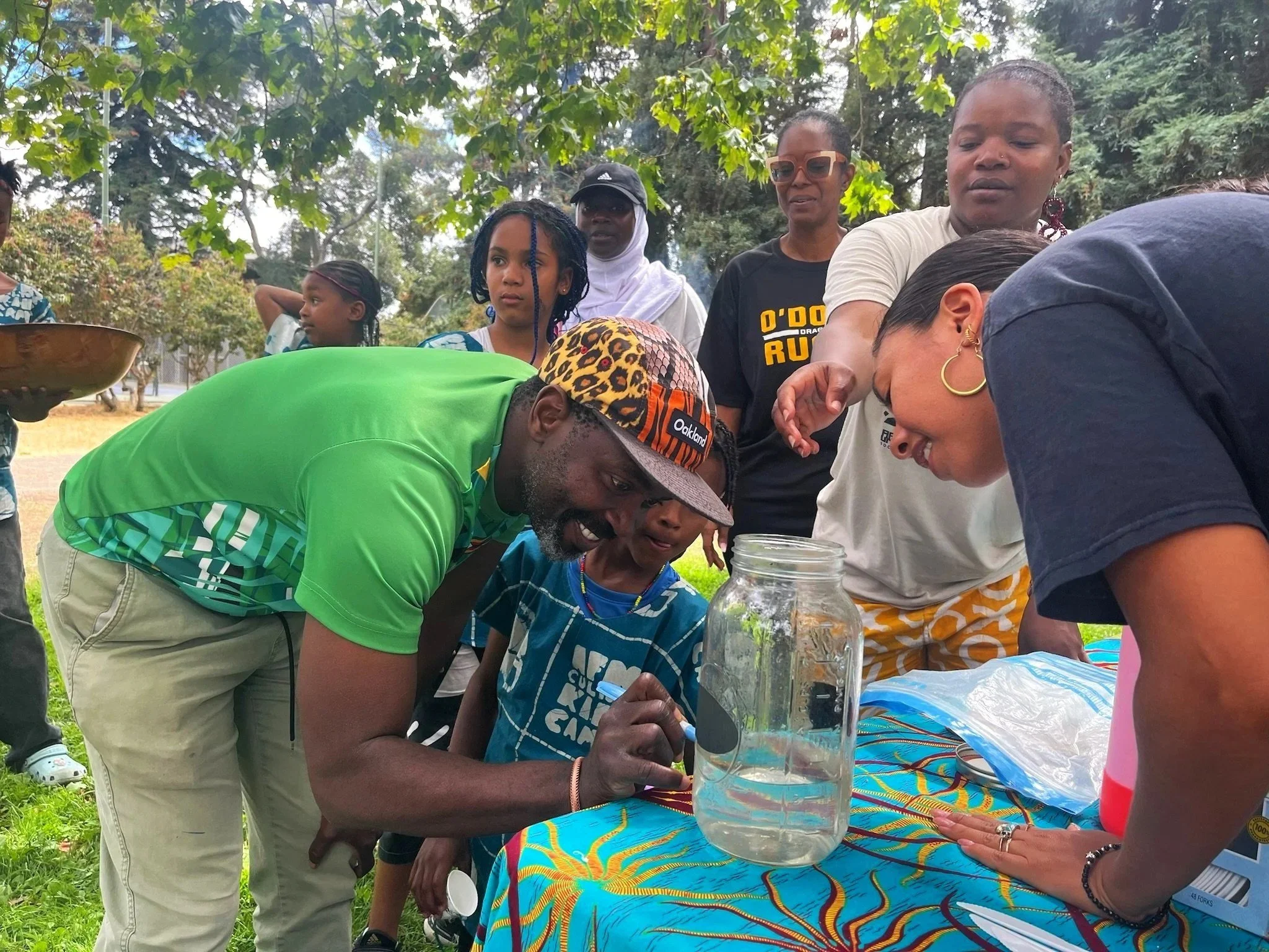 We gathered in a circle under Oakland’s overcast skies, singing, learning new greetings, and diving into a variety of games. We shared stories, laughed until our bellies hurt, and feasted on a table brimming with delectable diasporic dishes, including chakalaka, sadza and refreshing homemade lemonade. We savored every bite, returning for seconds and thirds of lovingly made treats.