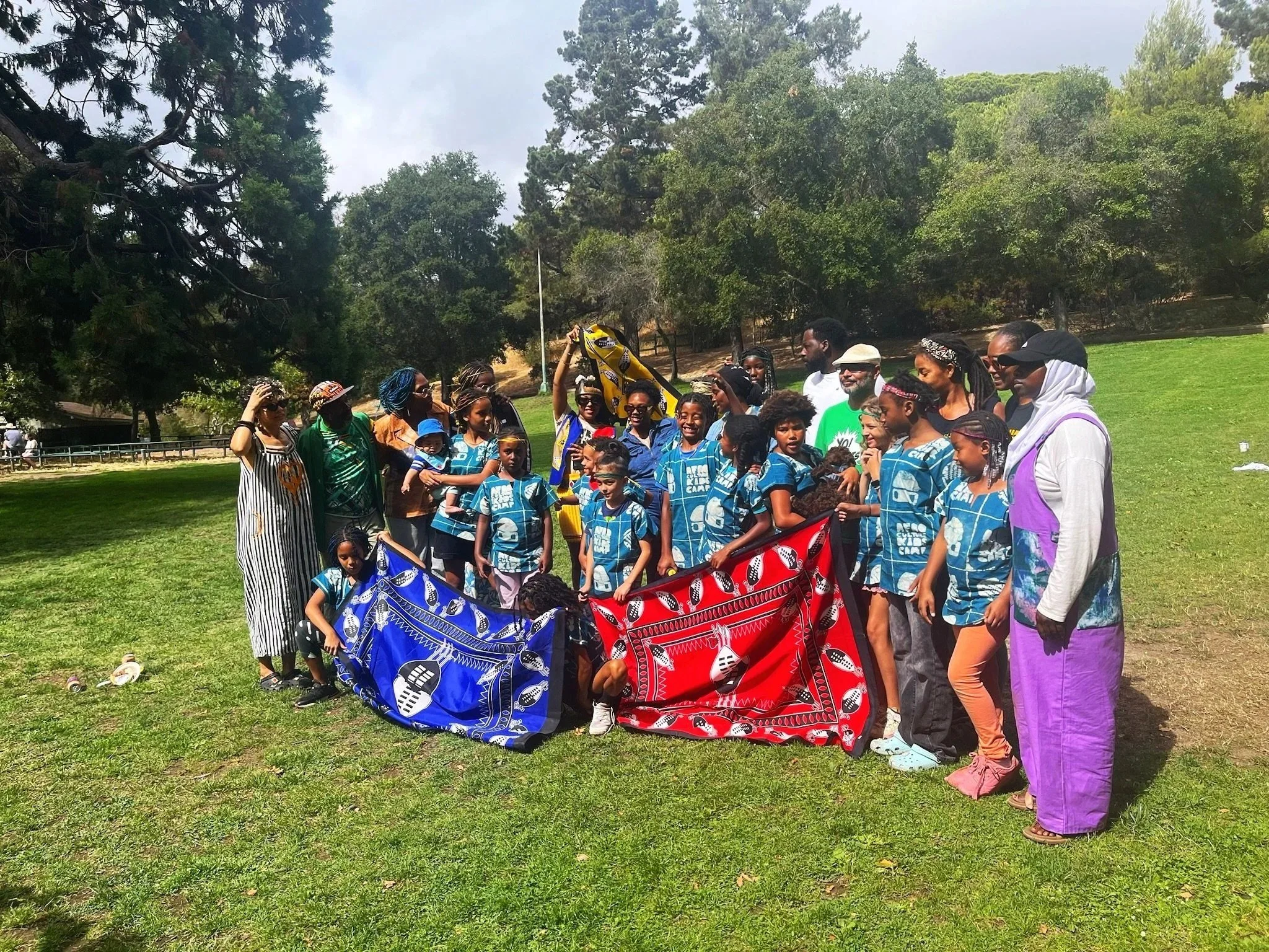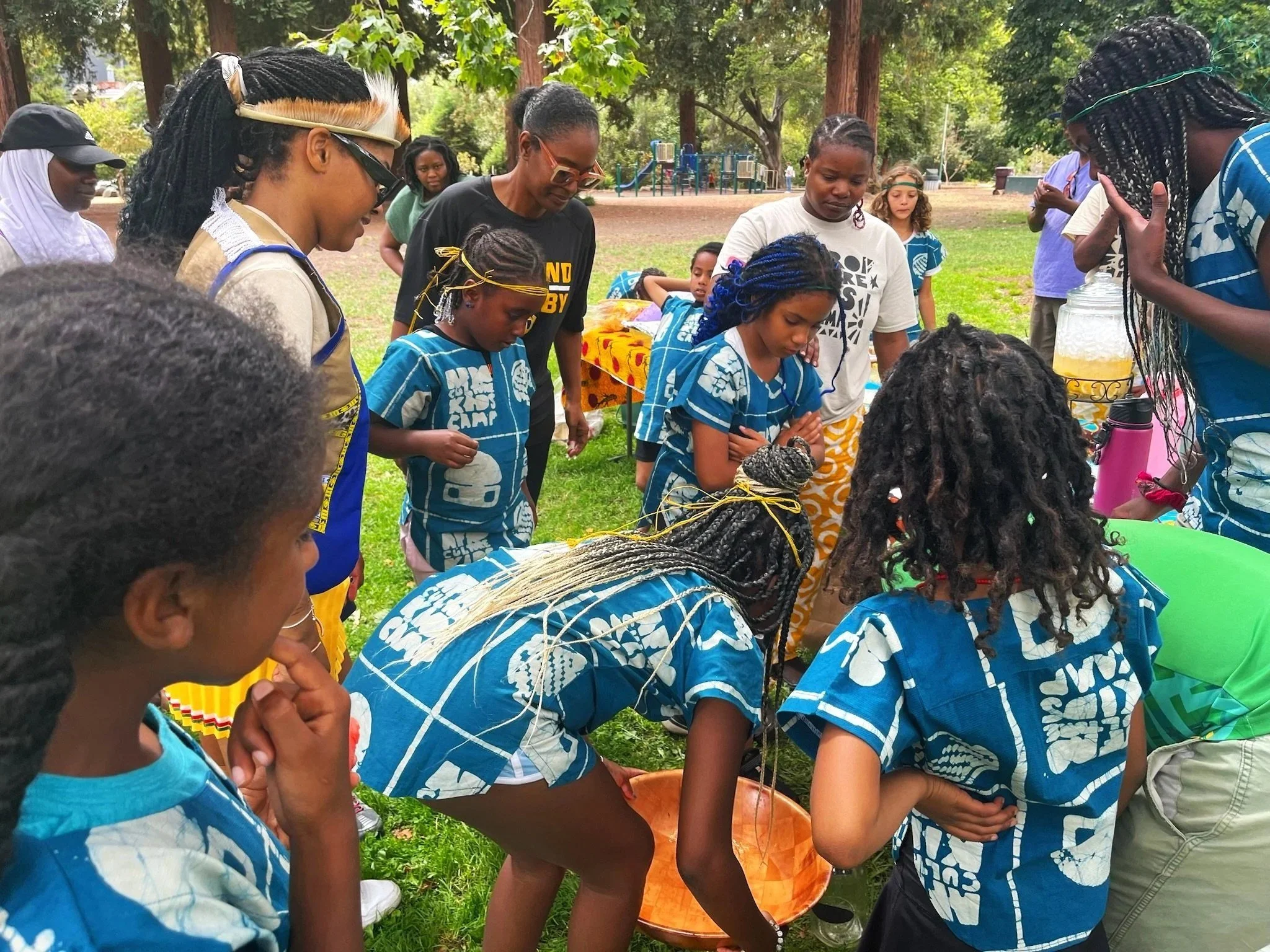 It’s all cheers from different agemates in each tribe house at Dimond Park in Oakland during our 2nd Annual Intertribal Games & Chow Day. Every year, we invite our ACK Family and community of people of African descent to bring a dish from their culture and play games for a couple of hours. It is a time we celebrate the hard work our campers have put into learning new cultures and activities at camp while also being allowed room to be creative and compete with each other.