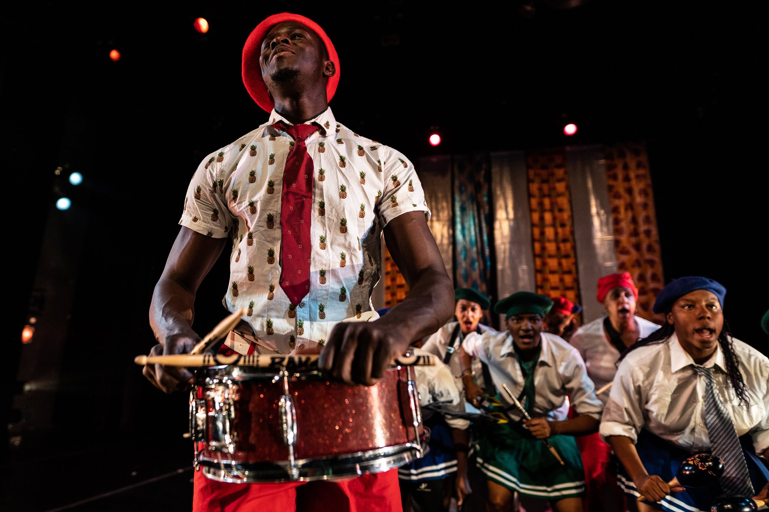 Afro-pop ensemble of dancers and musicians